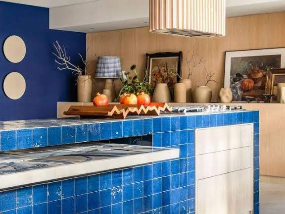 O azul puro é altamente democrático: com branco, resulta em luminosidade e frescor; com tons terrosos, reforça vínculos com a natureza; com metais como dourado ou cobre, ganha sofisticação; com verde, cria um diálogo orgânico, quase paisagístico.